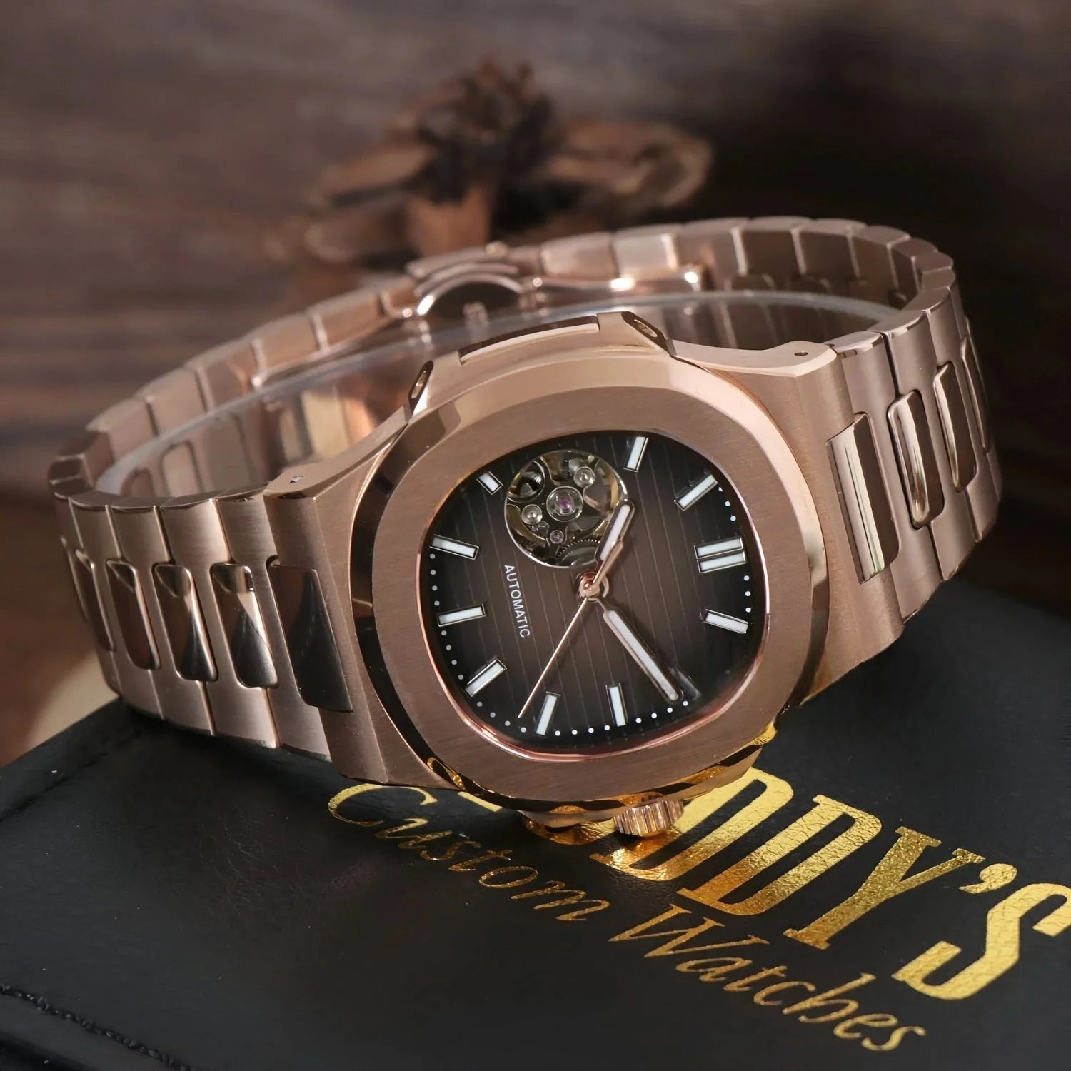 Certo! Puoi scegliere e personalizzare il bracciale, la cassa, il quadrante, le lancette e persino aggiungere il tuo logo o le tue iniziali.